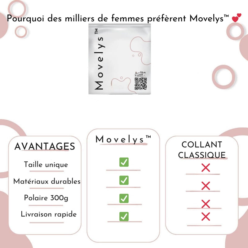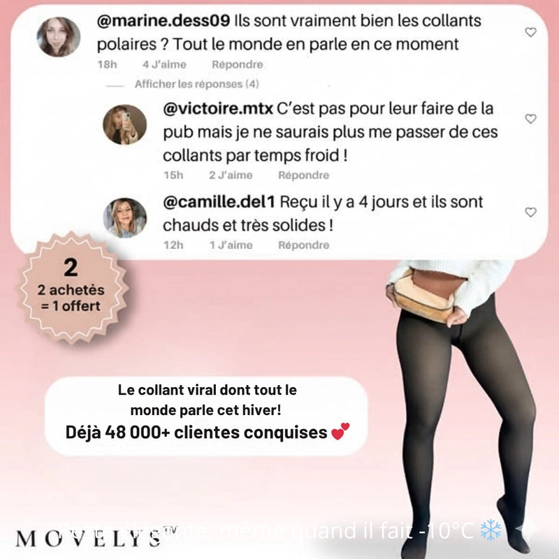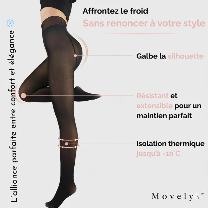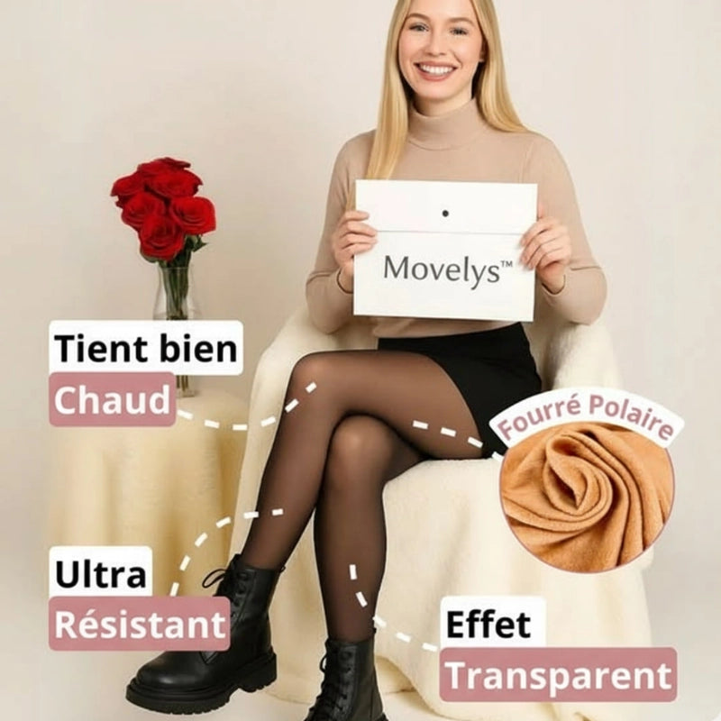 Fini les collants qui serrent ou glissent. Movelys™ épouse vos formes et vous accompagne à chaque pas : chaleur douce, allure féminine, confiance assurée. Restez libre de vous sentir belle — même quand il fait froid.
