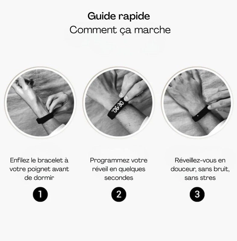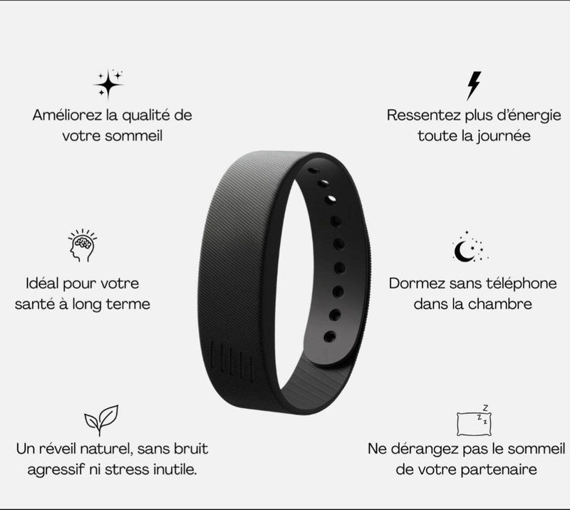 Avec Movelys, fini les réveils stressants. Ce bracelet intelligent vibre directement sur votre poignet pour vous réveiller en douceur, sans bruit, sans déranger votre partenaire ni vos enfants.